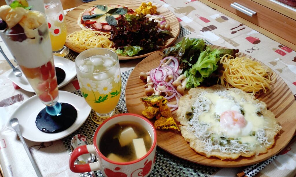 今回の「手作りピザとパフェプレート」、 生地の伸ばし方もトッピングの並べ方も、細かく見ると反省点はたくさんあります。 でも、焼きたてをテーブルに運んで、2枚のピザと山盛りサラダと背の高いパフェグラスが並んだ光景は、思った以上に「特別な休日」でした。