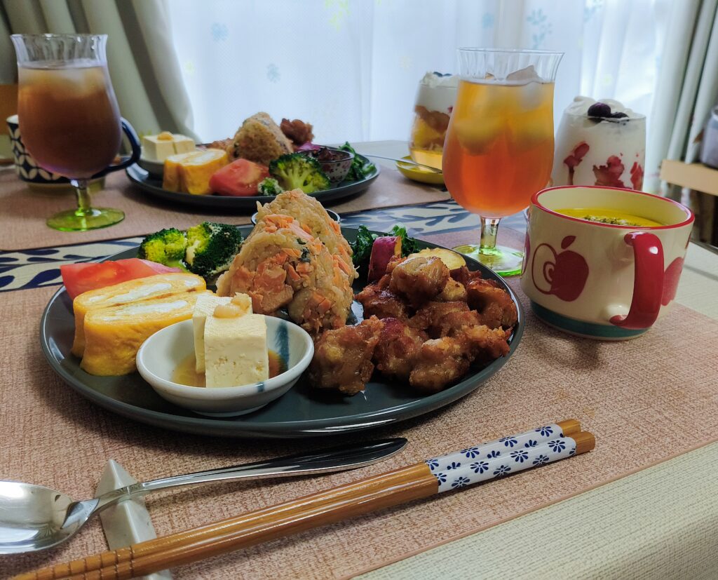 そんな小さなツッコミから始まったこの日のごはんは、「じゃあ今日は堂々と唐揚げ出しますけど?」という、私なりの無言のアピールを込めたプレートになりました。